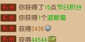 除了经验与金币外,还有机会获得:玫瑰花、金兰花、月华露、兽决、金柳露、五宝等,不错的奖励,还有一朵菊花。