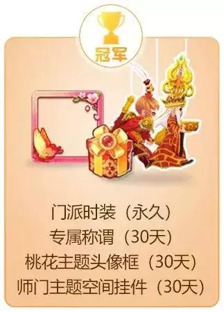 6.玩家所获时装,以参与的门派活动为准,且每人最多获得一套永久时装。举个例子:【剑侠客】是大唐玩家,绘制【普陀】门派时装获得【普陀】门派时装第一名。他将获得一套【普陀】永久门派时装、【妙手天成·普陀山时装设计大赛】30天称谓。