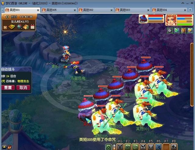 先来分析一下数据,大鬼的小怪有4810血,进战斗后有一个主怪带上7个小怪,一共8个怪。129级的人物秒7,这就导致有一只速度最慢的怪最多只能被你最后出手的两个人秒到。然而两个人秒出4800的伤害是极其困难的。那么我们的解决方案就是让无底洞二速挂单秒,配个1速女儿的群秒,秒飞一个小怪。那么剩下还是7只怪,你还有3个人没出手,即可实现让速度最慢的那只怪被3个人秒到。