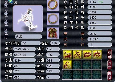 应朋友的需求更一下109全力宝宝的属性,以后也会同时更新129和109两个等级,09的话没有什么上位选择了,鬼将为基准的话,5技能画魂高工资确实更优,但是价格比较大,所以09主要比较几种个性宠之间的差距。鬼将在09的属性,还是取资质1645加成长1.264,这样109级一共914力量,换算成攻击的话是1851的基础攻击。首先比较1555攻资的4丹宝宝(幽莹娃娃,云游火,画魂),90攻资总共差了38点面板攻击。因为内丹上没有输,所以也完全能用,38攻击完全在可接受范围里。