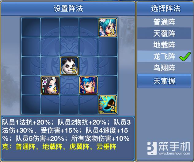 伙伴阵法:龙飞阵、地载阵