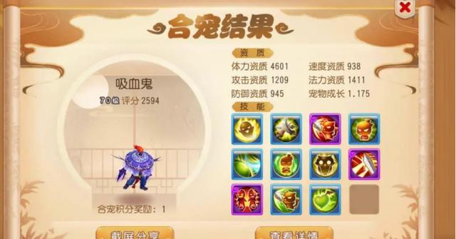 可以看出,楼主此次合宠的目标是合出一只带有善恶有报的高资质、多技能吸血鬼,但我们都知道,想要在合宠中完美继承特殊技能非常困难的,到底这一手能不能成功呢?