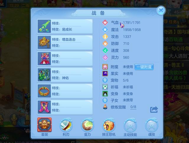 但其实对于想要打出更高伤害,在团队战斗中体现出更高价值的小伙伴们来说,附魔是不能忽略的存在,以130级的气血符为例子,可以给人物附加200以上的气血,比一个小强壮的加成更多。而且游戏为了方便大家,之前也推出了"一键附魔"功能,大家只需要勾选需要附魔的属性即可。
