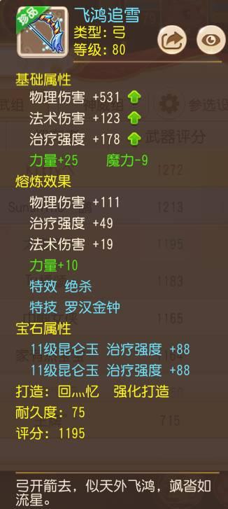 看到这把武器的特技,可能很多人会以为这是输出门派的神器。仔细看镶嵌的宝石,才能证明这是一个加血门派的武器,这把武器高达175的治疗强度,对于任何一个治疗门派来说都是一个巨大的提升。