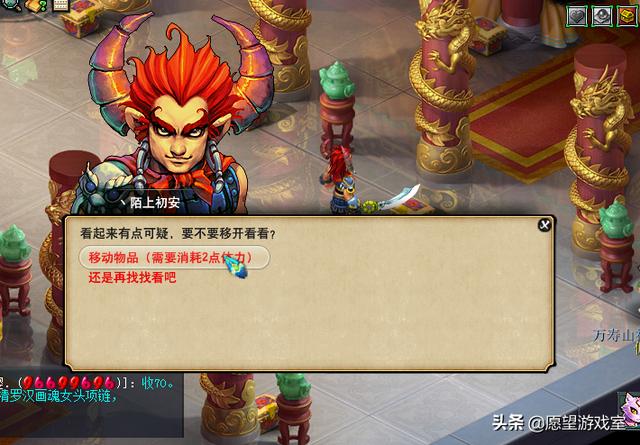 进入后地图是长安皇宫,点击地上的宝箱需要2点体力打开,可能有金击子可能空的,还可能遇到任务。