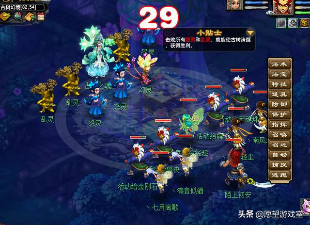 杀死怨灵跟乱灵就可以了,主跟幻灵会逃跑,乱灵会蓄力,蓄力之后会释放什么不清楚,都秒死了,怨灵会秒二的紧箍咒,主无限鹰击、幻灵第二回合会召唤人参果娃娃,别杀死,主就不会动了。战斗结束之后就是第六环了。