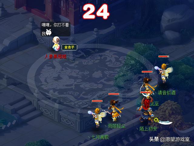 每个号需要拿5个金击子,拿的时候可以把宝宝都收起来,够了以后门口道童传送出来人参果树这里集合组队。