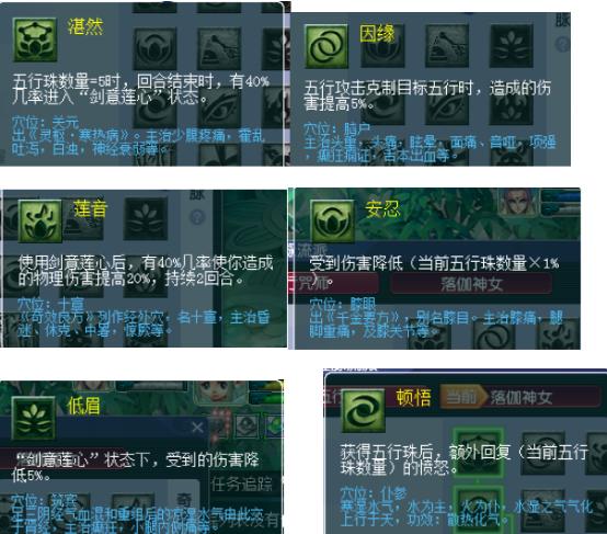 每次使用五行法术的时候,有机会获得五行珠。当五行珠数量=5的时候,则会进入剑意莲心的状态。