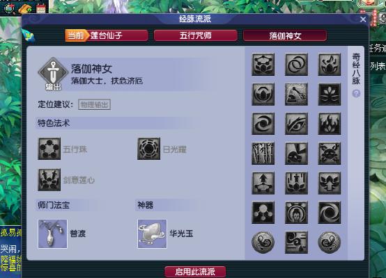 当你选择落伽神女流派的时候,你原本的五行法术,都会变成新的五行法术,但是都是以五行之力驱动的物理攻击。