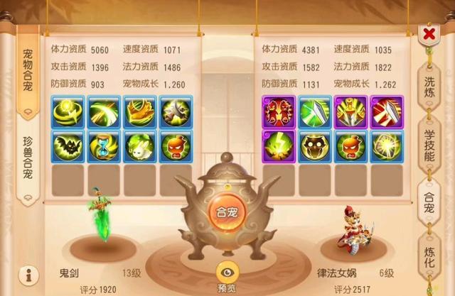 日前,游戏君就遇见了这么位大佬,拿8技能的鬼剑与8技能的善恶律法放在一起合。这种合宠方式对一般玩家来说简直不可想象,拿这只8技能的善恶律法来说吧,攻资1582,成长1.262,一般人有这宝宝还费劲合宠干嘛。大佬就是大佬,价值几百万金币的律法说合就合,太顶了。