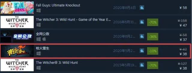 2020年,《枪火重生》Steam国区上线时,堪称当季度的国产黑马,游戏上线后一度进入热销榜Top 3,随后在半年左右的时间里达到了百万级别的销量。并且公布了主机版、手游版的开发计划。