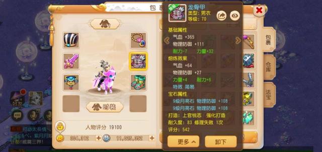 而衣服方面,这位玩家同样选择了一件70级的简易装备,在防御属性方面提升不少,经过熔炼后拥有429点气血和138点物理防御加成,让自己的生存得到保障,不过遗憾的绿字属性只有36点力量加成,显得有些美中不足。