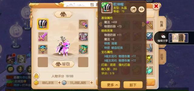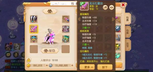对于一名输出门派的玩家来说,一把趁手的“神兵”是必不可少的,这名玩家所装备的70级简易剑非常强悍,经过熔炼后拥有572的物理伤害加成,在绿字属性上还有30点力量加成,搭配上两个9级的太阳石,无论是面对什么对手都能从容不迫。