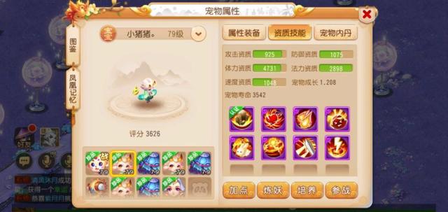 第一只宠物是8技能的忘川童子,从各项属性上来看这只宠物非常优秀,其中法力资质达到2898成长达到了1.208,都超出了忘川童子的基础属性不少,在技能配置方面除了输出类的技能外,还有高级驱鬼,高级反击技能,在对战PK时能够对敌方的鬼魂类宠物打出恐怖伤害,并且免受物理宠物的连击技能。