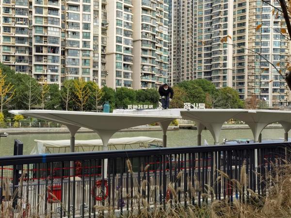 △行走在苏州河步道上,远远就能看到昌化路游船码头。(市民吴牧之 摄)