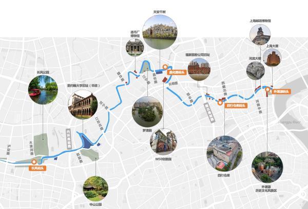 目前4条城市行走路线均已开始售卖,具体而言是:以外滩源码头为起点,覆盖和平饭店、海关大楼等外滩优秀历史建筑群的线路,生动诠释上海的“城市精神”;以四行仓库码头为起点、南京路步行街为终点,以水陆联动路线“民族精神”回望苏河两岸民族工商业风云;以昌化路码头为起点,途经福新面粉二厂、申新九厂、信和纱厂等民族工业旧址,见证民族资本家实业救国的“实干精神”;以长风码头为起点、中山公园为终点,沿途走过中央制药厂旧址、上海火柴厂旧址、来福士广场等文化地标,感受上海的“开拓精神”。