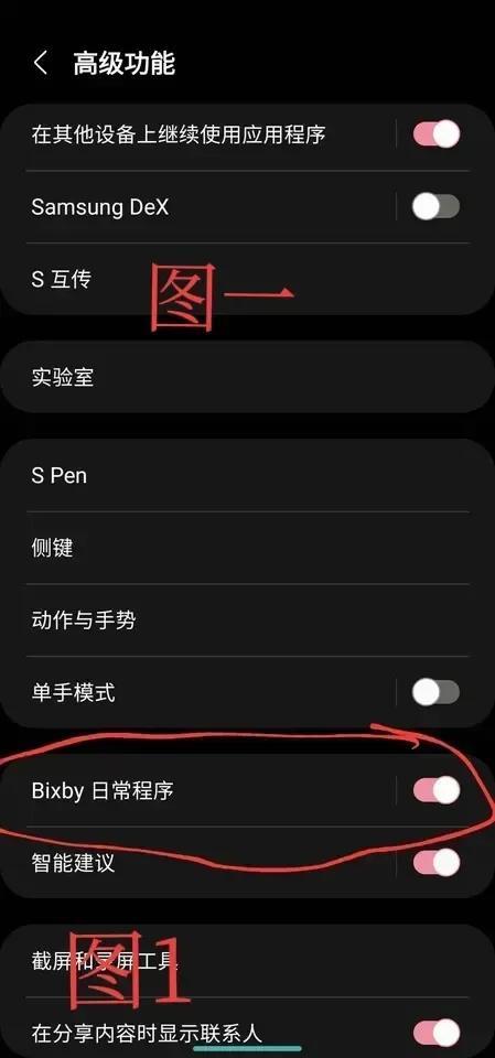 想要体验Bixby日常程序,我们首先就要先进入系统设置的高级功能列表,手动开启“Bixby日常程序”选项,也可以直接搜索关键词进入。(图1)