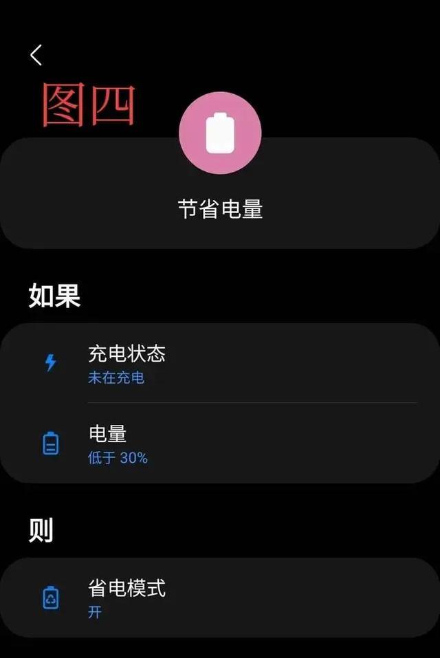 简单例子:如果“电量低于30%”则“开启省电模式”(图4)