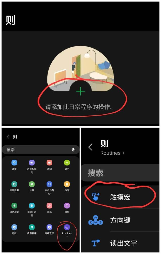 点击“则”的操作程序----点击“Routines+”-----点击“触摸宏”。(图7)