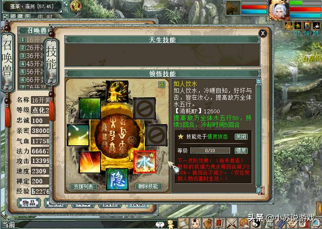 召唤兽启灵之后就可以开启悟灵了。启灵其实就算是一个前置任务吧,启灵了才能悟灵,不然是无法悟灵的。所谓的悟灵就是对召唤兽所拥有的的原技能的一次强化。技能悟灵后,可以获得概率提升、数值提升、额外作用等效果。目前是只有部分高级技能开启了悟灵效果,普通技能和终极技能无法进行悟灵的。