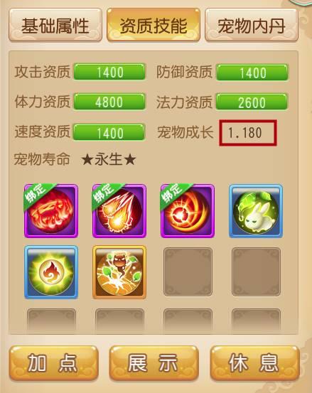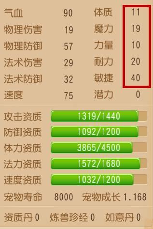成长的高低直接决定着宠物各项属性的发展情况,在资质相同的情况下,成长越高,宠物的最终属性就越高。