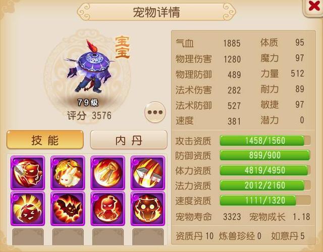 4个评判条件都很重要,不过想要同时具备这四大条件,是非常难的。事实上,如果宠物有其中一项达到出色的水平,就可以称之为极品BB了。今天灵儿就带各位玩家鉴赏4只极品宠物。