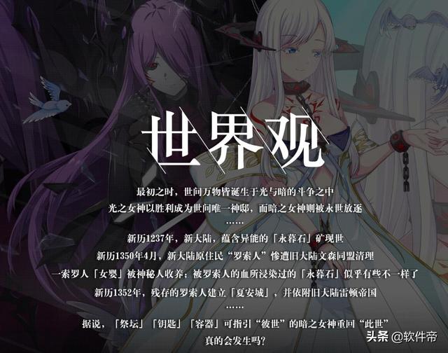 当然除了一些列丰富的玩法外,这款手游也有主线剧情,在剧情方面也是一大亮点,游戏中拥有庞大的世界观,诉说着光与暗两个女神之间的故事。