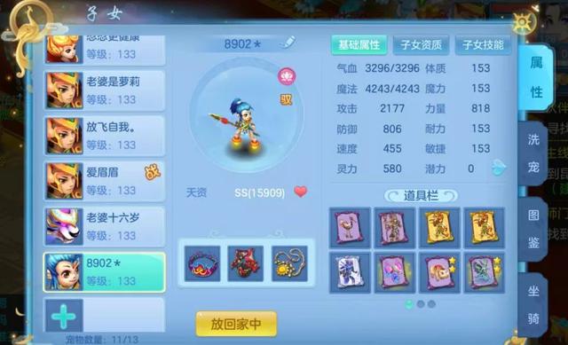 首先是一个佛门孩子,也是大家对物理孩子的热门选择,其中一个御兽技能选择了先锋提高输出,然后配上高必神佑勇敢的常规打书
