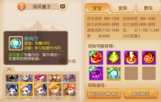 从截图中我们可以看出,这是一只罕见的认证9技能全红御风童子,体力资质高达5646,攻击和防御也都非常优秀,唯一的遗憾是2202的法力在资质偏低,不过后续还可以喂养资质培养丹来提升,对于勇武组玩家来说,满足大部分任务与PK需求。