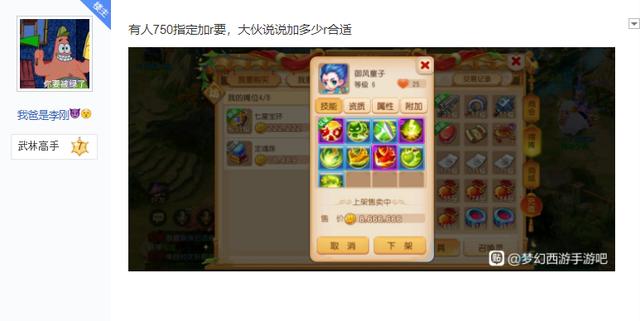 看完楼主晒出的这只御风童子,网友们纷纷开始帮他估价。有人认为,这只御风童子资质尚可,成长值1.24也很不错,技能格子更是非常够用,不论后期搭配输出或是生存技能,都有着极大的潜力,所以其价格在750万金币的基础上还能提升不少,这波起码要加600红包!