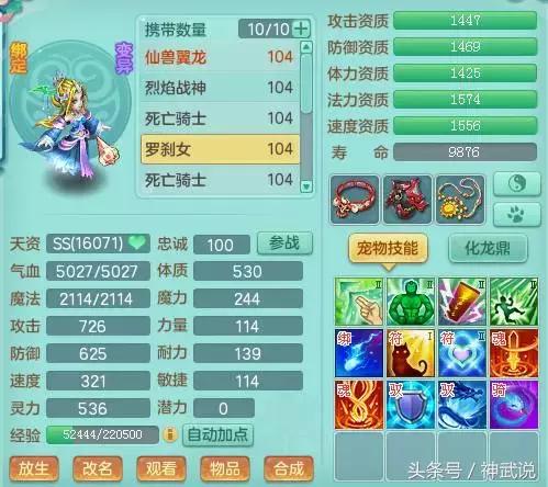 推荐加点:保证2800+血,500左右的速度,其余全部加魔力。