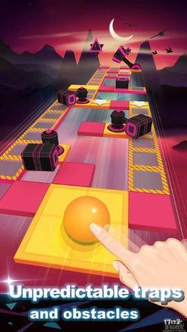 游戏操作很简单,玩家只要按住屏幕并划动,就能控制滚球往左滚或者往右滚,只要成功避开障碍物和陷阱,就能一直跑下去。