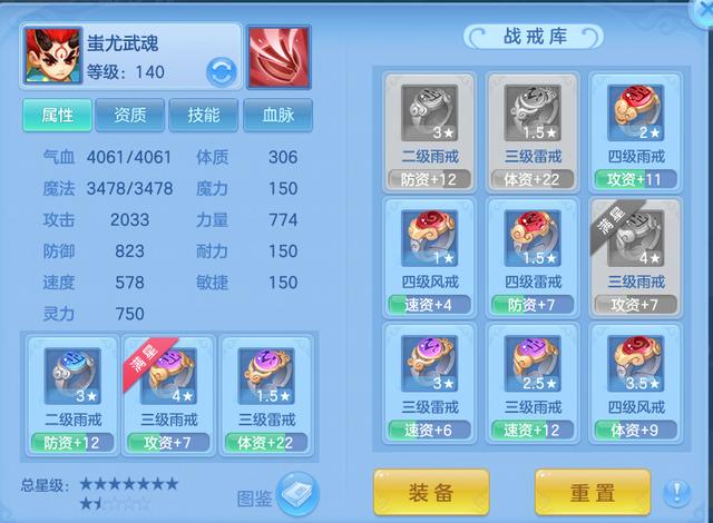在细说战戒的作用之前,我们先来一起了解下这次上线的战戒。每个战戒都有着“风”“雨”“雷”三个类别,同时也存在着级数、星级上的不同。少侠通过将不同类别的戒指组合起来就可以获得不同的战戒技能,而除了战戒技能之外,战戒还会给宠物带来不同程度的资质加成,子女暂时则没有战戒加成。