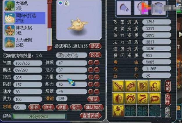 这只憨态可掬、天真无邪的小花铃不仅技能翻页,而且还携带了高级遗志、龙魂、潜力激发、须弥真言四个特殊技能!真的无法想象这样的花铃召唤出来是何等的刺激,就是担心潜能激发没有机会释放呀,毕竟这几个技能搭配起来真的是太强悍了!