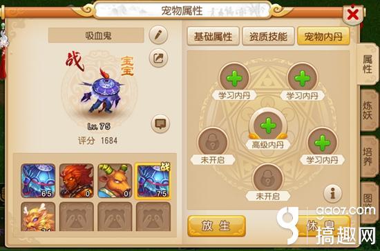 内丹就是给宝宝增加伤害,防御或者增加技能几率,你们可以理解成宠物身上的宝石。