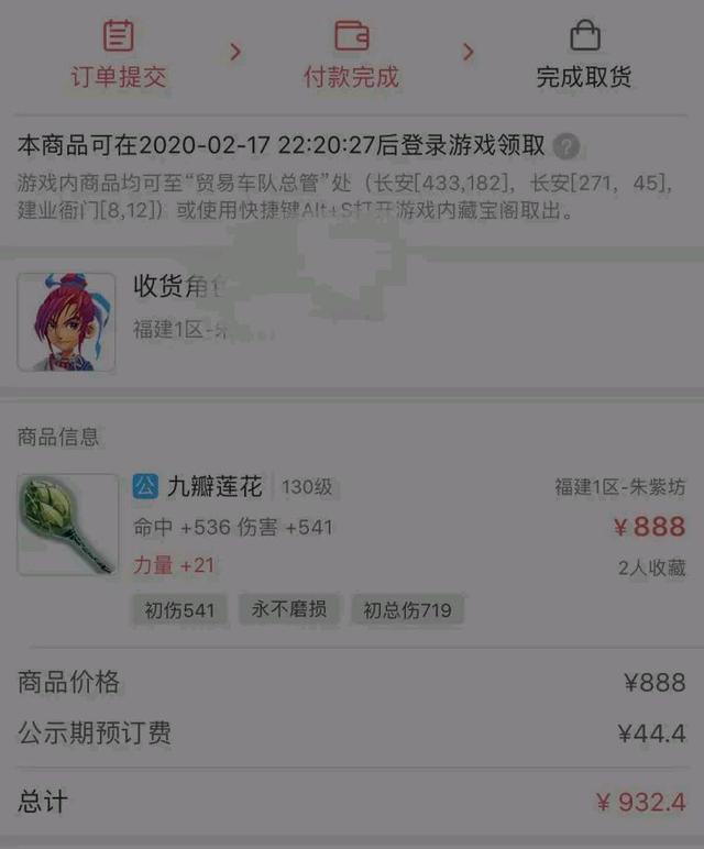 从网友提供的截图可以看到,一把130级的武器刚上架就被秒了。来自朱紫坊服务器的玩家上架出售130级锤子武器,结果手误摆错价了,上架不到1分钟就被他人买了。武器属性是这样的,伤害541,命中536,单加力量21,伤害命中属性都爆了,而且还附加了特效永不磨损。然而如此极品的武器却仅标价888元,很明显是摆错价了,搞不好还是摆少了1个零。