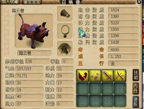 对于召唤兽打书,平民玩家只能小打小闹,偶尔玩一下几率还是可以的。最近某玩家花几十块钱从藏宝阁买了上面这只踏云兽,攻击1524,成长1.252,4技能高必宝宝。而该玩家决定自己来一次打书直播。
