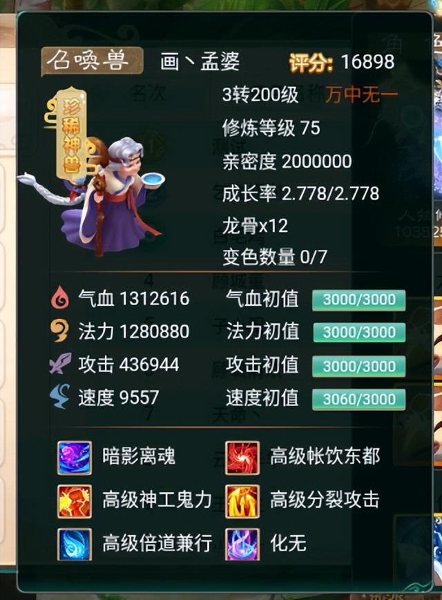 出现的一只宝宝就是孟极,这个孟极直接改变了所有攻击方式,可以说是目前攻宠的巅峰,拥有多点攻击的模式。而且无视保护和反震效果,可以说是比之前的任何鎏金宝鉴宠物都厉害,如果再领悟化无的话,不管是日常还是战术使用,都是必备的。