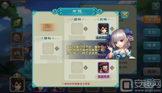说到选择伙伴,还得看看上阵伙伴是怎么样配置的。首先上阵伙伴的数量会随着主角等级的提升而增加。从最初只有一个,最多可以上阵6个伙伴加1个替补。而这6个上阵伙伴中,又分为前排和后排两种位置可以进行布阵。所以一个普遍适用的布阵大方向就出来了:前排选择防御力高的伙伴承受伤害,保护队友;后排选择攻击型或者辅助型伙伴,增强续航能力和攻击力。