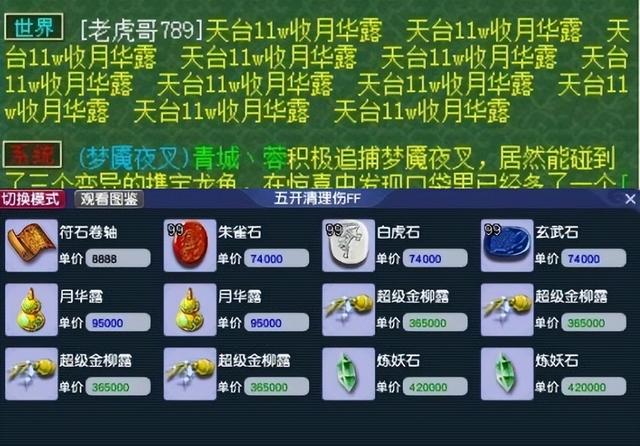 梦幻中有些玩家出售物品的时候喜欢自己摆摊,而且这部分玩家出售物品时还不会看物价,就比如上面的这个摊位上所出售的月华露,这位玩家摆摊出售月华露的价格是9.5万元的梦幻币,而该服务器内收购月华露商人所开出来的价格是11万两的梦幻币,这位玩家通过摆摊出月华露不只消耗了点卡成本,还亏了1.5万的梦幻币。