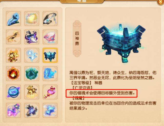 地府的神器“四神鼎”效果是被锢魂术命中的单位额外承受10%的伤害。因此这多出来的9%就是神器的效果,不信你把1768和2766分别去除10%,你再计算,会发现刚刚好是30%!