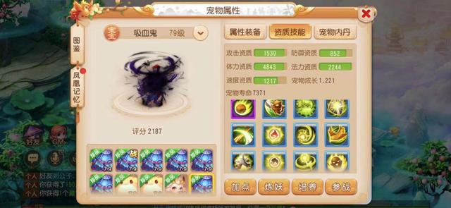 首先,我们来看看该玩家这只12技能吸血鬼的资质,攻击资质1530,体力资质4843,法力资质2244,宠物成长1..221。法力资质跟宠物成长都爆了,并且这只吸血鬼初始还带有主动技能落岩,这要是能打成法宠,那伤害绝对爆炸。不过,这只12技能吸血鬼虽然不错,但挂价3000万,那可真是把玩家都当傻子了。
