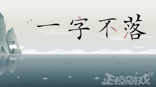 《一字不落》是一款文字游戏,真的只玩文字的那种。游戏融合了中国传统汉字,以及美术与音乐的传统的意蕴美,都让人不得不称赞中华文化的博大精深。或许,生活中的我们总会提笔忘字,但在闲暇之余,借这款游戏来回味一下汉字,也是一种不错的选择。