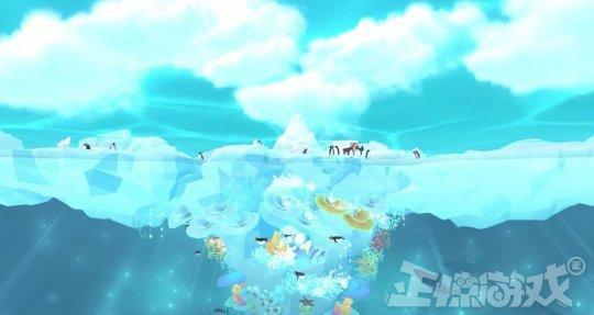——整个游戏氛围延续了前作的风格——美丽,宁静,治愈。旋转屏幕,可以欣赏潜伏在海里的冰山一角。你还可以跟拍某只动物,看看它日常在哪里晃悠,跟着它的视角欣赏这片风景。