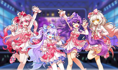 该团体聚合了游戏内非常受欢迎的几个“萌妹子”,服装也是可爱爆表,主要以粉紫色为主的连体蓬蓬裙,超萌的双马尾、灵动的长发呈现在玩家面前,令人喜爱不已,元气少女集体出场,还不尖叫吗?