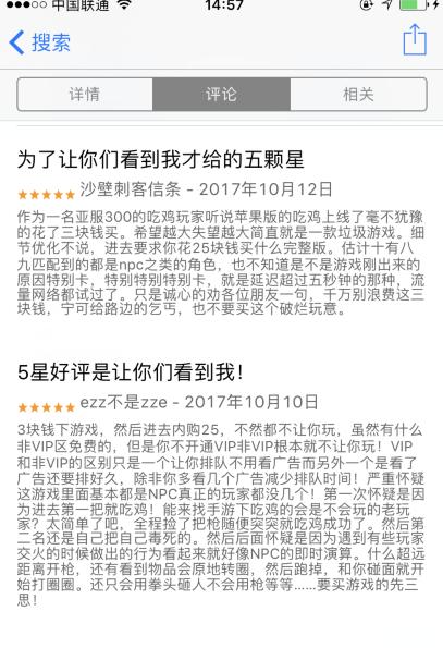 对,就是这一个吃鸡游戏,具体玩法都差不多,而且要收费,于是小白点进去看了评论,果然不出我所料:一片谩骂声!
