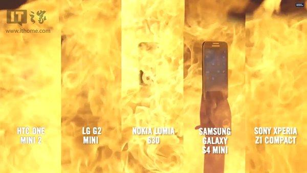 5款智能手机经受三轮烈焰喷射,诺基亚Lumia630在面对其他手机时,在极端环境下,依然彰显出诺基亚惯有的品质,在这个年代,只有品质是永远值得追求的。