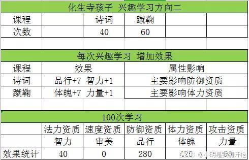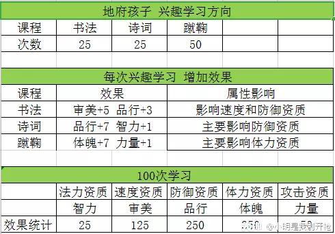 兴趣学习课程:25书法+25诗词+50蹴鞠,抗性为主要,速度稍次,但也不可太慢。