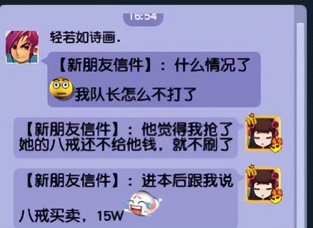 挑战的是无底洞副本,副本难度才三个星,但为了提高效率,团长要求来暴力散人。但的确没有注明买卖八戒的挑战权。因为团队从来没有听说过这个规矩,一直默认是谁抢得快就是谁的。不过散人玩家觉得不公平,五开的效率比较高,速度肯定快,所以向五开玩家进行了讨价还价。