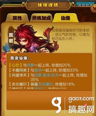 1.结萝与厉岩同时上阵攻值增加20%,与自己爱的人在一起,夫妻同心,其利断金